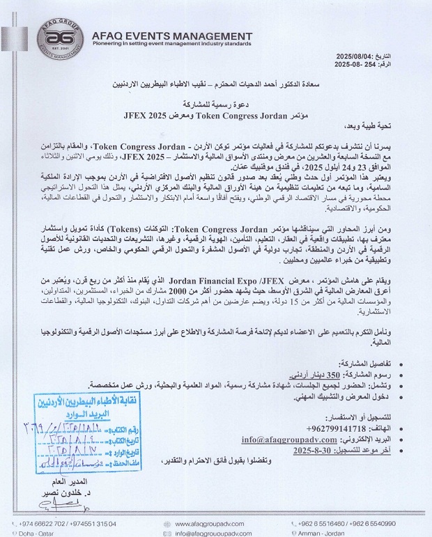 دعوة للمشاركة في مؤتمر Token Congress Jordan ومعرض JFEX 2025