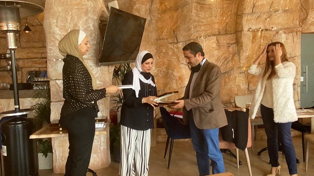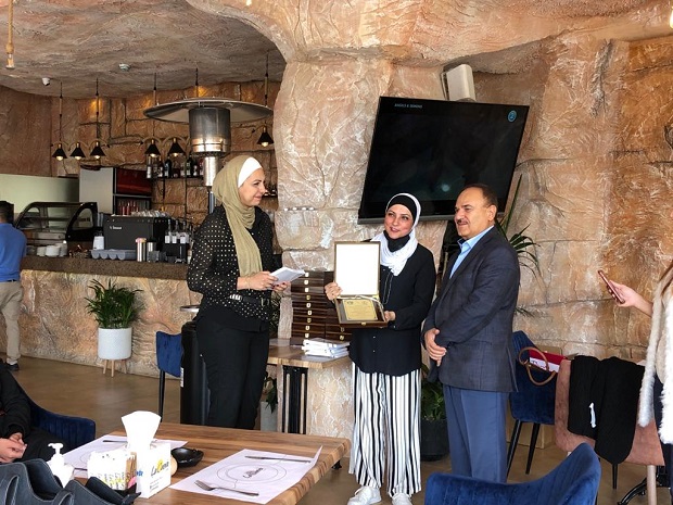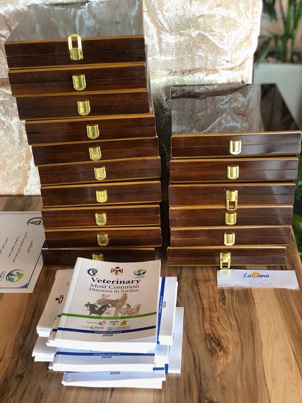 كما رحب  الزميل الدكتور يسار الخيطان بالحضور وأشاد بأعمال لجنة الطبيبات البيطريات وشكرهن على هذا الإنجاز المتميز ، وفي نهاية الحفل قامت رئيسة اللجنة الدكتورة أسماء الغزاوي بتوزيع الدروع والشهادات على عضوات اللجنة والمشاركين في طباعة وإطلاق الكتيب وهم :-