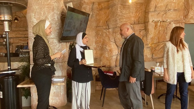 في مطعم لاكويفا حيث تخلل الحفل تكريم للزميلات عضوات لجنة الطبيبات البيطريات والشركات الداعمة لطباعة الكتيب