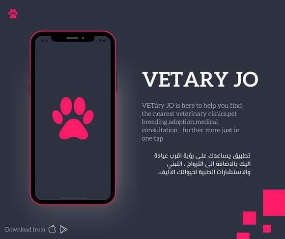 تم بحمد الله إطلاق تطبيق VETary JO وهو عبارة عن تطبيق مبتكر وجديد على مستوى الوطن العربي قام به مجموعة من الطاقات الشبابية الطلابية في كلية الطب البيطري بجامعة العلوم والتكنولوجيا الأُردنية تتكون من الطالب مهند نصار و الطالبة جود الشوبكي و زملائهم معاوية الظاهر و ليث حجازين و راكان صالح و جنان السلع وبالتعاون مع نقابة الأطباء البيطريين الأردنيين ، ويهدف التطبيق إلى خدمة مهنة الطب البيطري عملياً وهو متوفر الآن على نظام تشغيل هواتف ( Android & IOS).