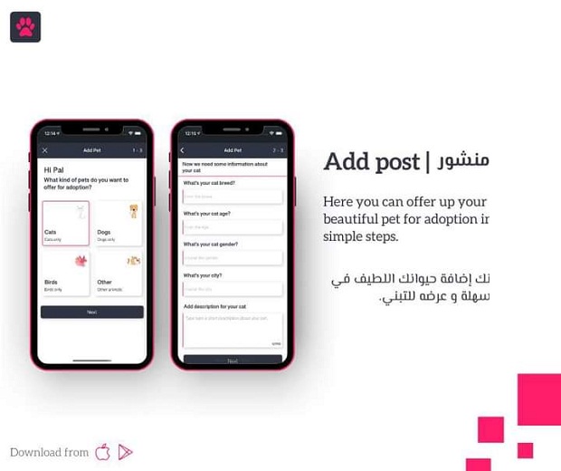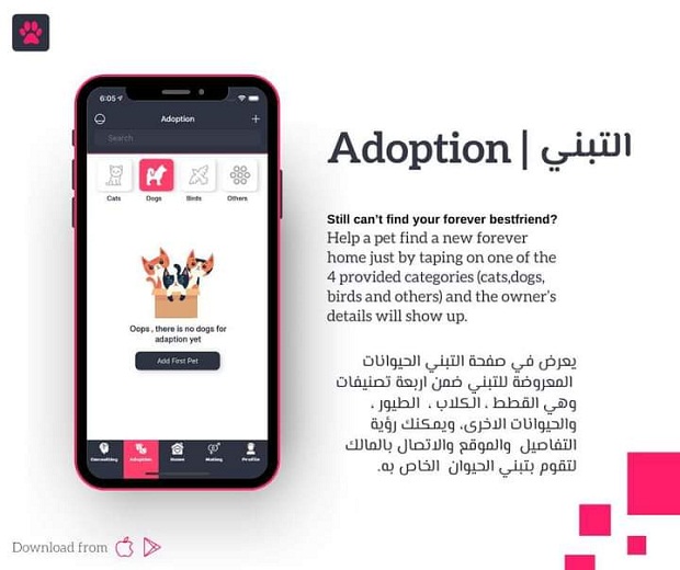 - إذا كنت تبحث عن حيوان أليف جديد ، فقد تجد رفيقًا لتبنيه من خلال هذا التطبيق .