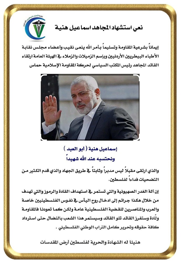 نعي استشهاد المجاهد إسماعيل هنية