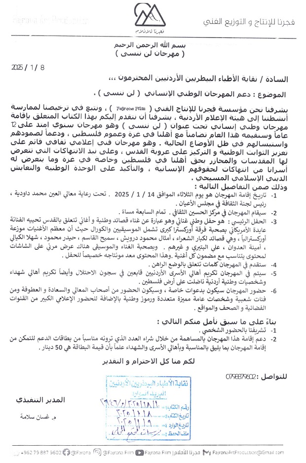 دعوة لدعم المهرجان الوطني الإنساني ( لن ننسى )