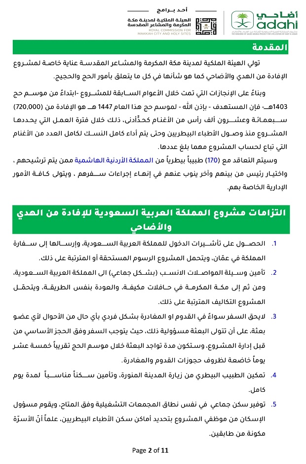 يرجى من الزملاء الأطباء البيطريين الأردنيين الراغبين بالمشاركة في مشروع المملكة العربية السعودية للإفادة من الهدي والأضاحي لموسم حج 2026 م / 1447 هـالتسجيل من خلال الرابط المبين أدناه https://forms.gle/PyRqXPPq8enaZXS78
