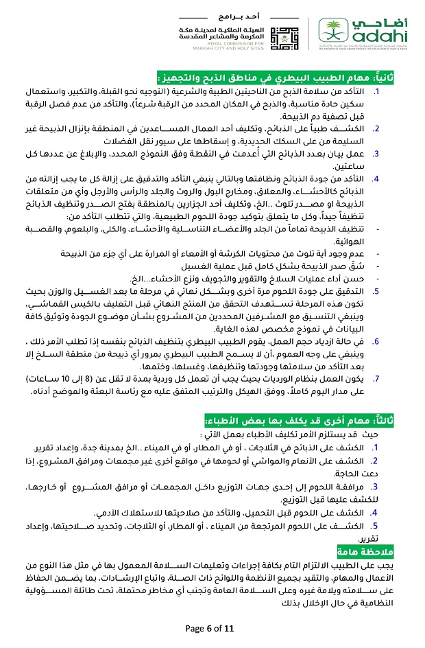 في مشروع المملكة العربية السعودية للإفادة من الهدي والأضاحي