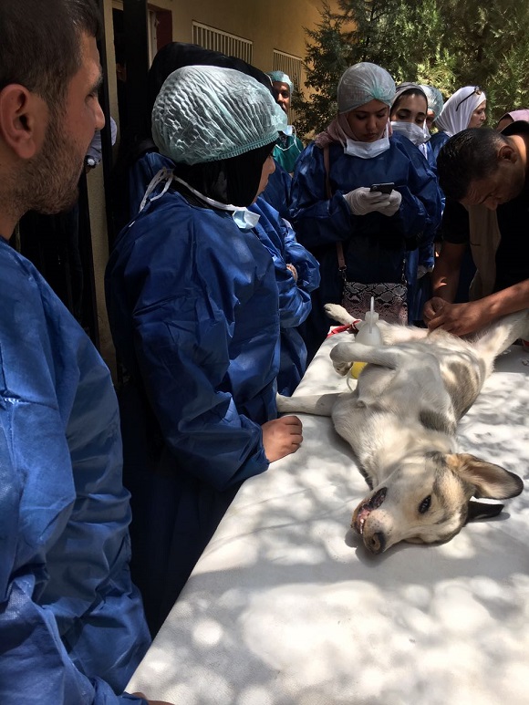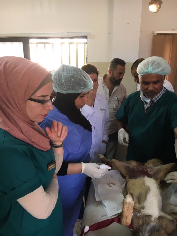 اليوم العلمي التدريبي المتخصص بمجال طب وجراحة الحيوانات الاليفة في مركز الإيواء لرعاية الحيوان - منطقة الموقر وذلك باشراف الزميل الطبيب البيطري بلال ابو هلال من جامعة النجاح الوطنية / فلسطين .