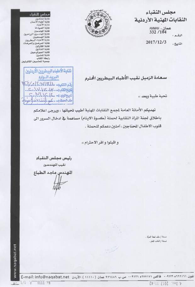 دعوة أعضاء الهيئة العامة في الكرك للإجتماع مع مجلس النقابة يوم السبت القادم