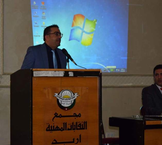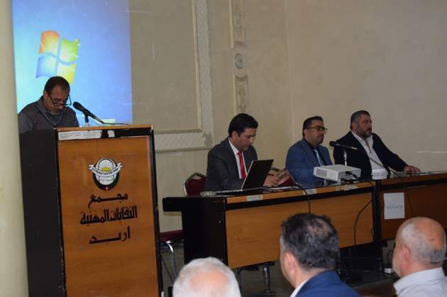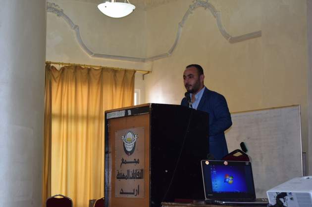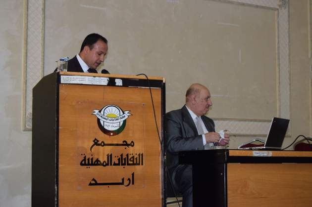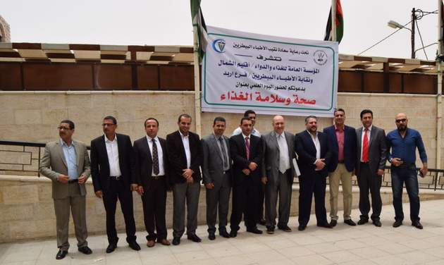تحت رعاية عطوفة الدكتور يسار الخيطان – نائب نقيب الأطباء البيطريين نظمت المؤسسة العامة للغذاء والدواء - إقليم الشمال وفرع نقابة الأطباء البيطريين - إربد يوماً علمياً حول صحة وسلامة الغذاء يوم الخميس 2018/5/10 في مجمع النقابات المهنية / إربد ، حيث ألقى كلمة اللجنة التنظيمية الزميل الدكتور معتصم السنجلاوي - رئيس فرع النقابة في محافظة إربد ، وألقى كلمة المؤسسة العامة للغذاء والدواء / إقليم الشمال الزميل الدكتور خالد الروسان ثم تلاها كلمة راعي الحفل .