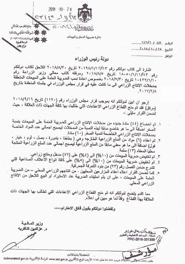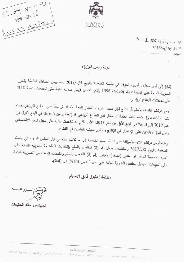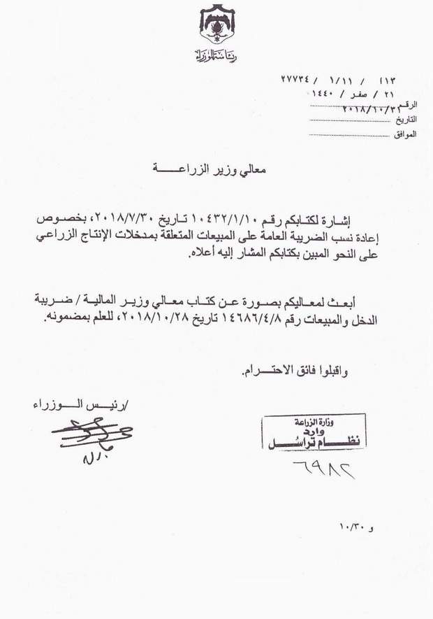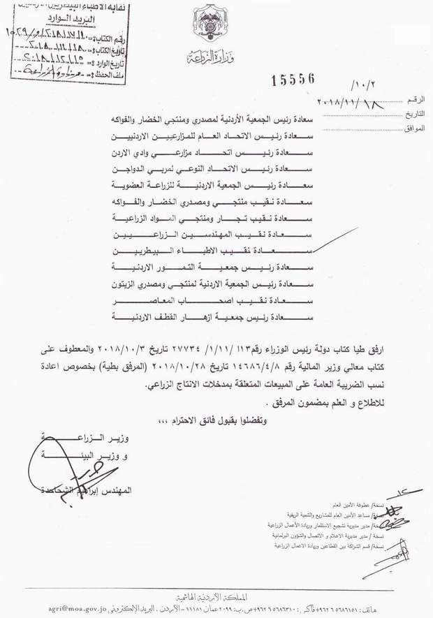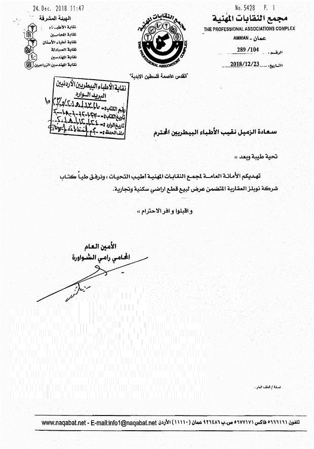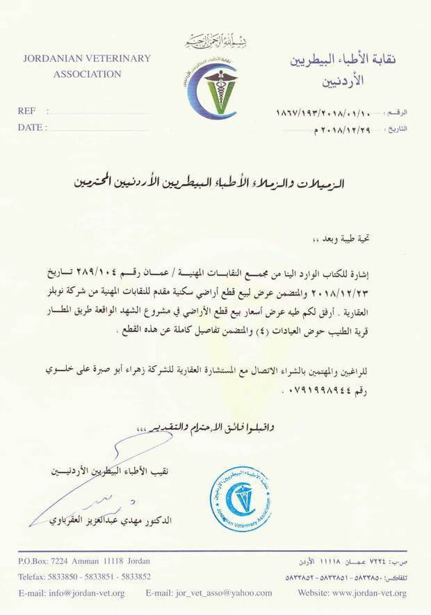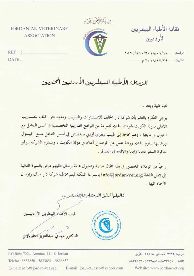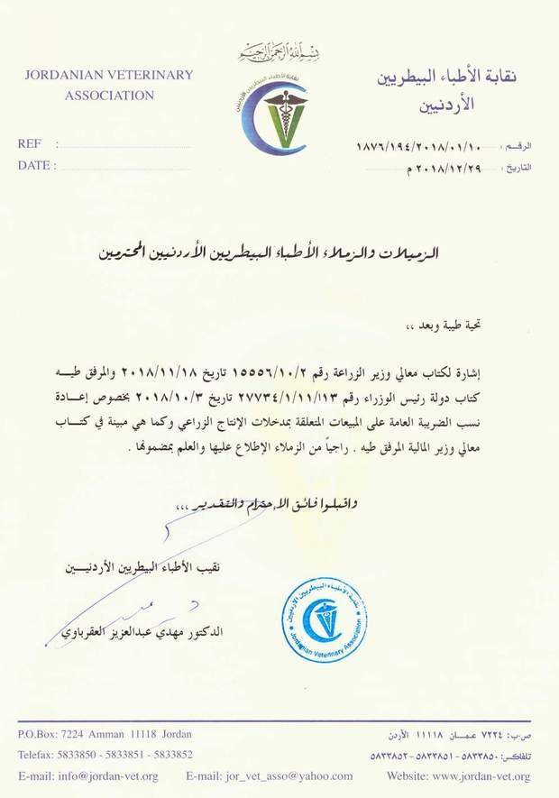 تعاميم للزميلات والزملاء الأطباء البيطريين الأُردنيين