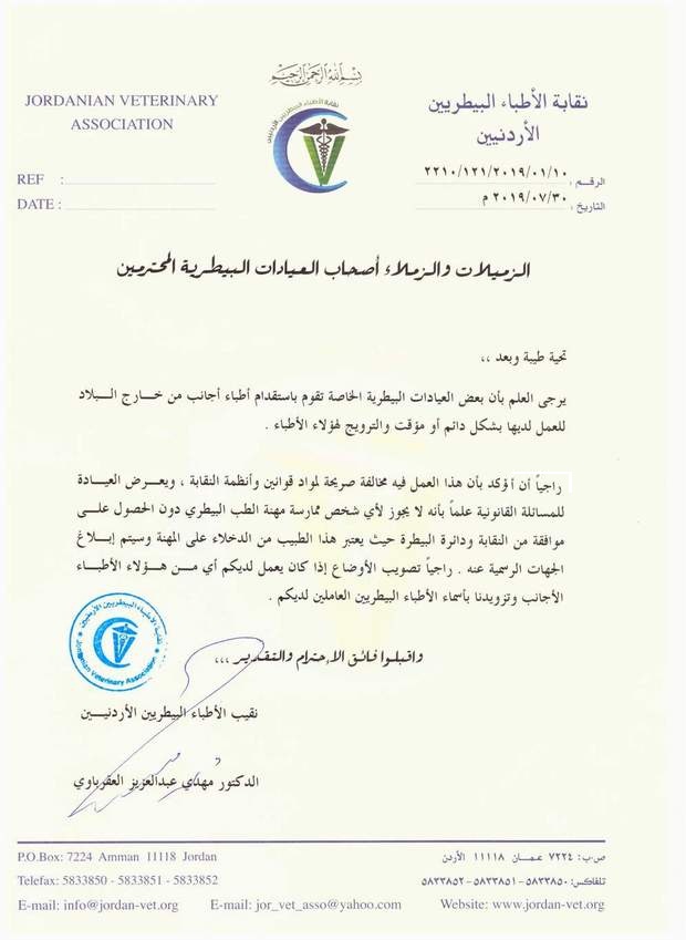 الزميلات والزملاء أصحاب العيادات البيطرية